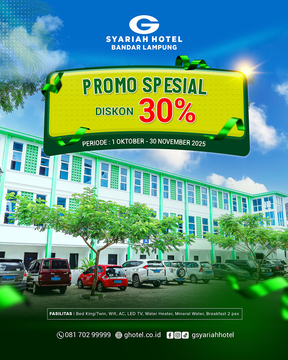 Mau liburan atau perjalanan bisnis yang nyaman tanpa bikin kantong jebol?G Syariah Hotel kasih kamu DISKON SPESIAL 30% buat kamu yang:✅ Booking lewat WhatsApp✅ Atau datang langsung ke hotel📍 Alamat Kami:G Syariah HotelJalan Urip Sumoharjo [...]