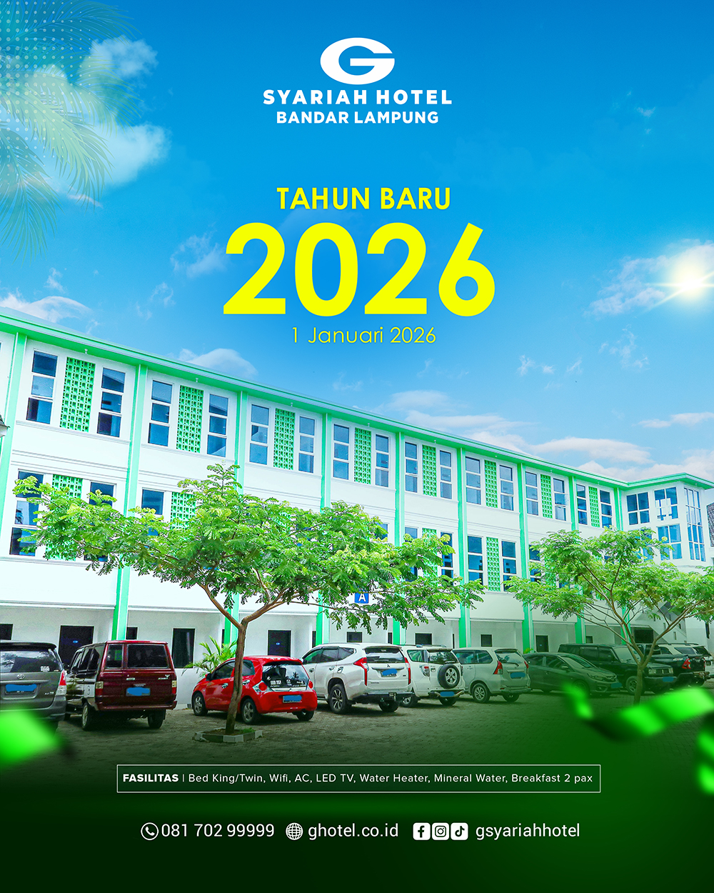 Di G Syariah Hotel, kami memahami pentingnya kebersamaan yang berkualitas. Dengan fasilitas yang ramah keluarga dan lingkungan yang asri serta islami, kami siap menemani momen pergantian tahun Anda menjadi lebih berkesan.